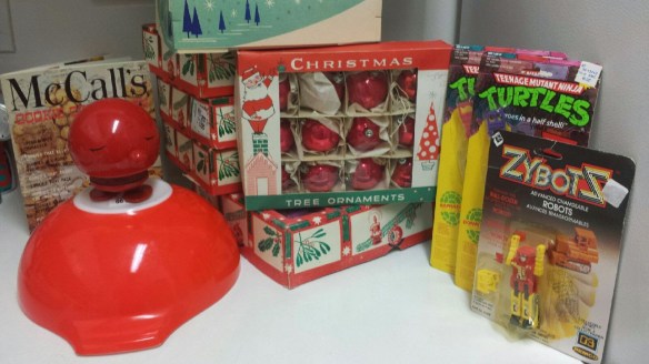 A bonus locale for all things Christmas. It’s funny how second hand stores get an eclectic gathering of Christmas goodies piled up from days gone past. Being a big thrifty shopper, I seek out these shops often… not so much to purchase, but to browse the holiday aisle to see how quickly the holidays are discarded. Those oh-so special objects become outdated, worn and donated away, all too quickly. I am taken back to my childhood when I see some chipped china plate or tacky, tinsel lined, flashing star tree topper à la 1970, shoved onto the discount shelf at my local Sally Ann. Occasionally, you can still find a singing fish or a Macarena dancing Santa. Oh, the memories.