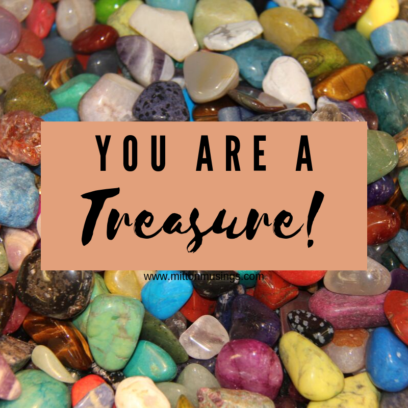 Now, imagine the rock is you. A diamond in the rough, waiting to be polished by the Master jewel maker, a treasure to be cherished. Displayed in His vast collection, handpicked from all the others, just because someone saw the potential of gold in your tiniest of cracks. God works like that. Or perhaps you have been worn smooth by the ever constant waves of life and you’ve been chosen, now, to soar across the expanse — simply for the shear joy of seeing you fly! You are a treasure.
