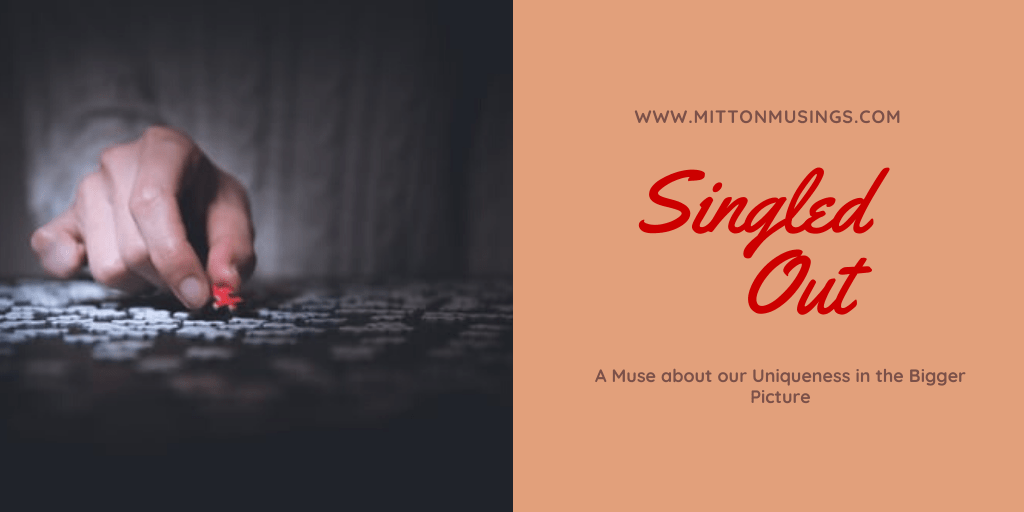 Here I was, singled out as someone special. Something to look forward to. Someone worthy enough to be pegged into the daily calendar. An event that will be talked about the following day, and perhaps in a month’s review. Talk about big expectations to fill. Which got me thinking… how do we get singled out? And how do we single out others?