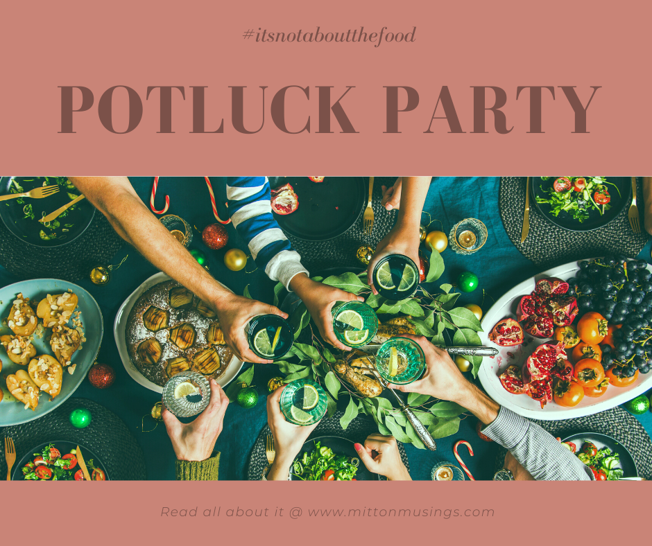 You’re familiar with the potluck, yes? A gathering of people who contribute to the meal by bringing a dish to share. Sometimes you are assigned a course, but I love it when it’s a free-for-all and the “luck” part comes in because you never know what will be on the table. I’m still waiting for the day when everyone brings dessert (and only dessert). Churches tend to organize such things (number one: because it’s cheap!) and the sharing and fellowship around the table brings a coerciveness to a body of believers that is reminiscent of Jesus and his followers. We just “connect” over food. It’s the same when we gather for family reunions or dinner parties with friends. There is just something about mulling over a meal that brings us a sense of comfort, peace and joy. I think we are losing some of that in this day and age when our meals are on-the-go and quick. We’ve substituted the country kitchen for the drive thru. The traditional mentorship of generation to generation is emphasized when grandma teaches the young brides her pie crust techniques. And who doesn’t love baking Christmas cookies as a family? You get the picture.