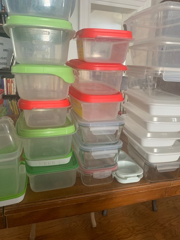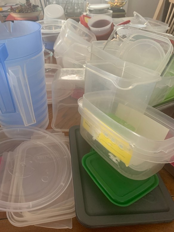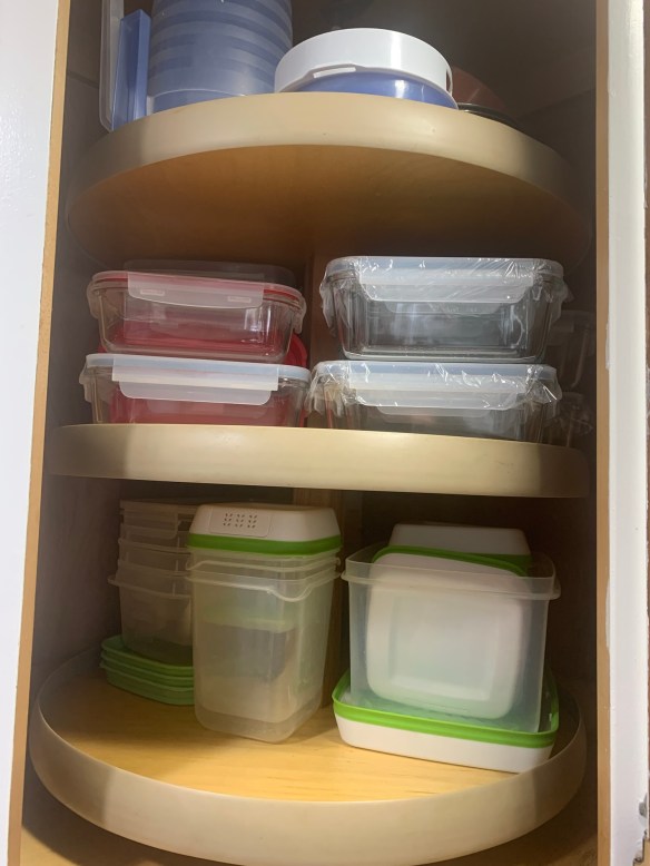 All this to say, the task got done, and my shelves are tidy. The mismatched but still good containers got collected and have moved to the craft room… for possible use there. Yes, the craft room is on the purge list… but that is going to be a much, much bigger project!